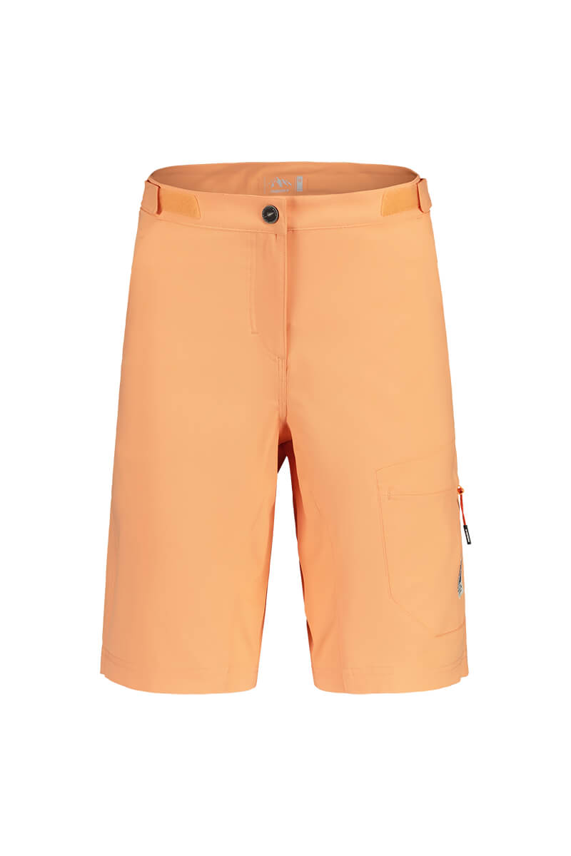 Opravdová, neustále vylepšovaná, klasika šortek Maloja. Se dvěma velkými zadními kapsami se zapínáním na suchý zip, zdobenými vyšitým nápisem Maloja. Tato aktuální verze je navíc vyrobena z recyklovaného polyesteru. Vsadka z elastického materiálu na zadním díle zajišťuje vysokou míru pohodlí při sezení na kole a šlapání. Mají nastavitelnou šířku pasu a přední kapsy na zip.