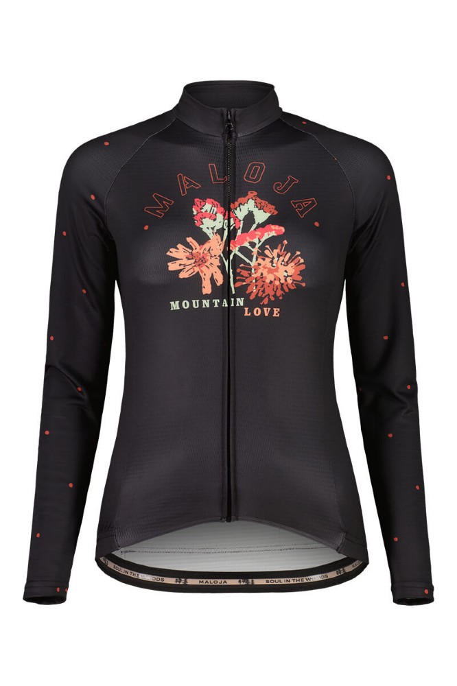 - Elastický, rychleschnoucí fleecový materiál od VanilM. 1/1 zajišťuje dobrý komfort v chladnějších dnech, s přiléhavým střihem, předním zipem po celé délce a třemi zadními kapsami ideálními pro sportovní motorkářky. S květinovou květinovou grafikou na hrudi a tečkovaným potiskem na rukávech.