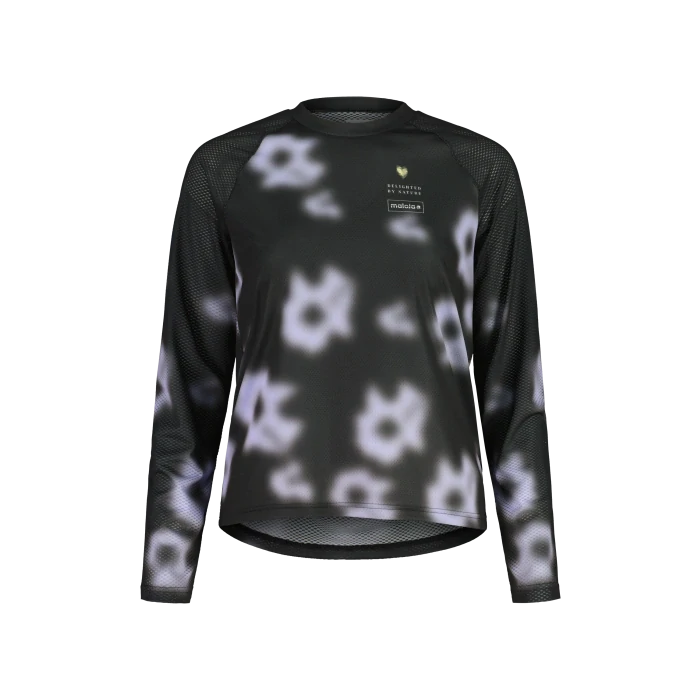 BaldoM. je longsleeve tričko s potiskem ideální pro jízdy v teplém počasí, které v sobě spojuje vysoký výkon s moderním grafickým designem. K dispozici ve dvou uměleckých potiscích – Shadow (inspirovaný botanickými siluetami) a Iris Grid (stylizovaný mřížkový efekt s květinovými motivy) – vyniká minimalistickým logem Maloja na hrudi a výrazným potiskem na zádech s nápisem Maloja inspirovaným lomem světla. Toto tričko je vyrobeno z tkanin Air Stretch a MoonDry Printed – obě ze 100% recyklovaného polyesteru – a nabízí ultralehké pohodlí, vynikající prodyšnost a rychleschnoucí vlastnosti. Texturovaná voština a perforovaná struktura zlepšují odvod vlhkosti pro optimální regulaci tělesného klimatu během náročných jízd. Díky technologii Polygiene StayFresh™ zůstává tričko déle svěží a vyžaduje méně časté praní, což podporuje hygienu i udržitelnost. Mírně prodloužená zadní část zajišťuje perfektní padnutí v jízdní poloze, zatímco reflexní detaily zvyšují viditelnost za zhoršených světelných podmínek. Technické dámské tričko pro dobrodružství na gravelu, horském kole a elektrokolech – kde se výkon setkává s jemnou estetikou.